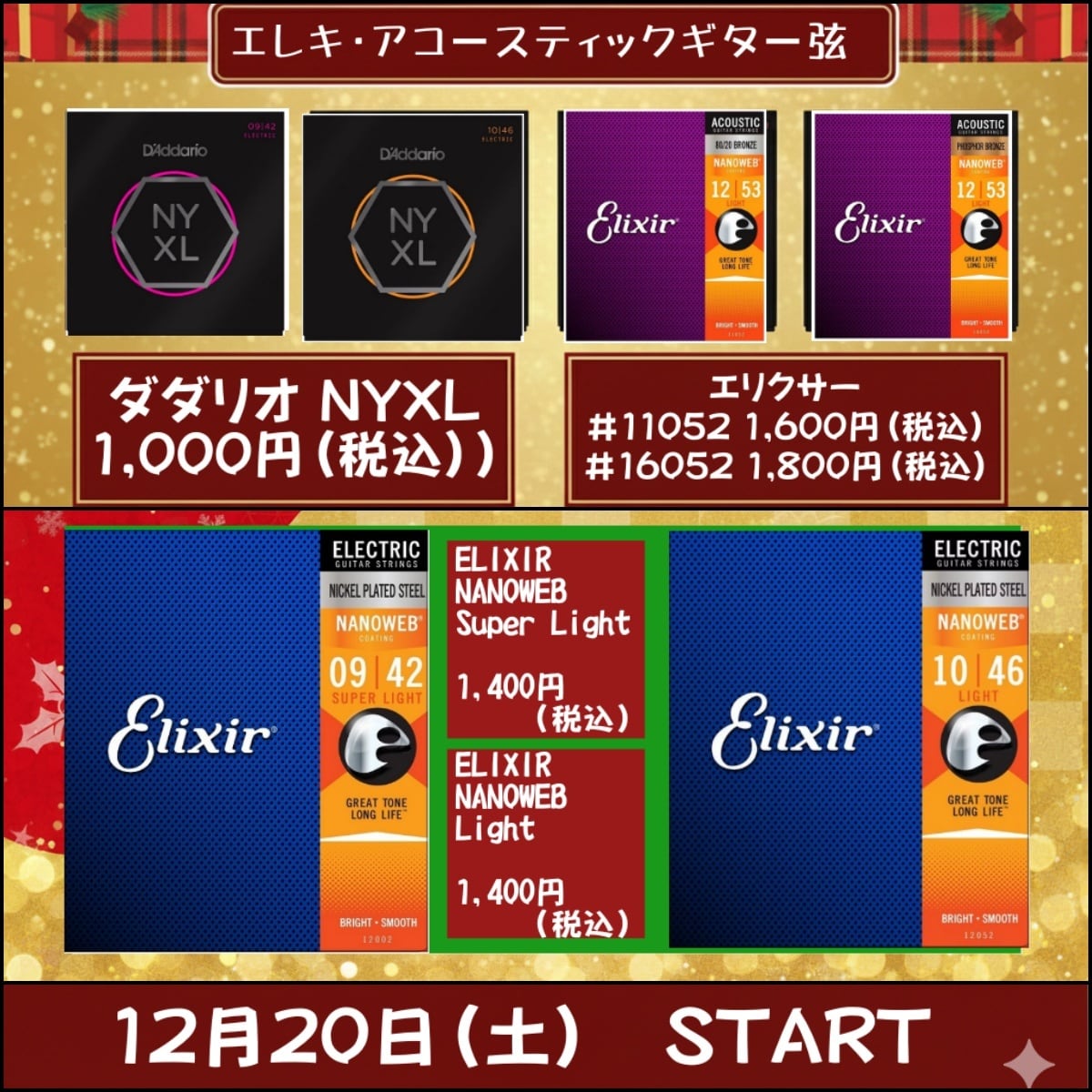 新品 ELIXIR エリクサー NANOWEB Super Light #12002 エレキギター弦