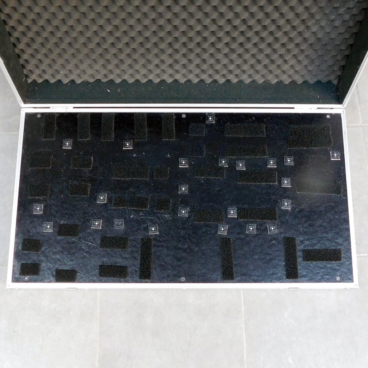 フラットタイプの設計で、ボード面の自由度も高く、内部はレザー張りの設置面とマジックテープ仕様でエフェクターの固定・配置変更が容易です。