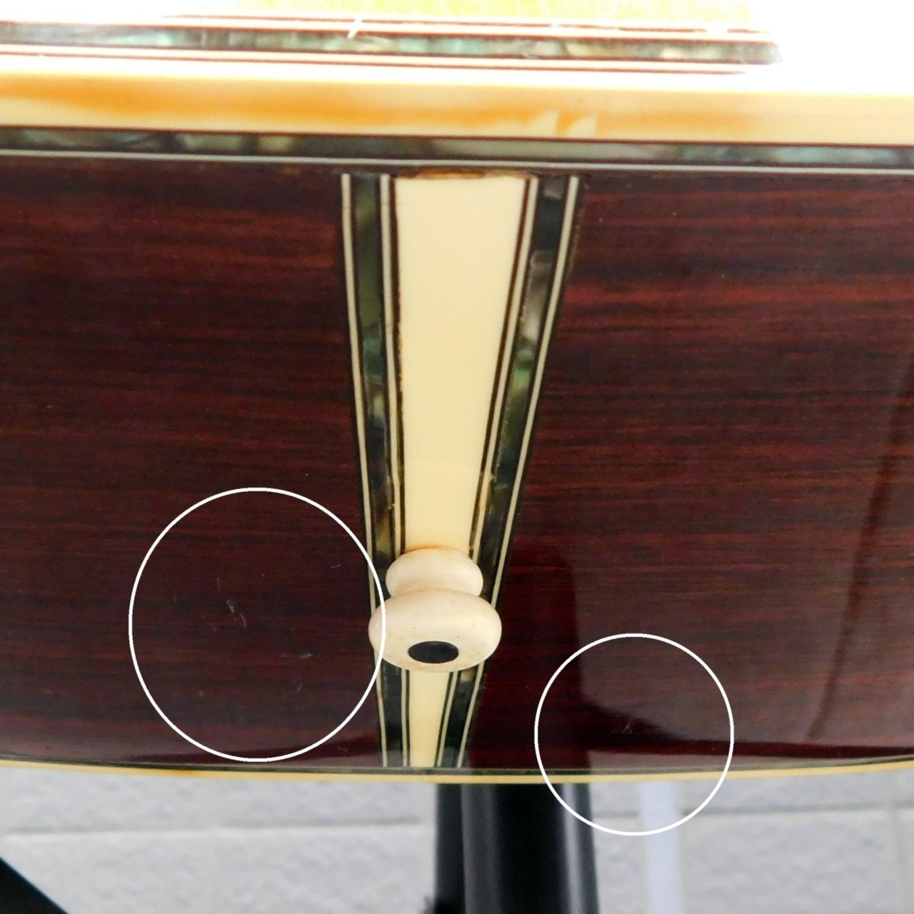 当時の販売価格が50,000円という高価格帯でリリースされた、非常に丁寧な作りが光る純国産ヴィンテージギターです。トップにスプルース単板、サイド&バックにローズウッドを採用した贅沢なウッドマテリアルにより、経年で熟成されたパワフルかつ豊かな響きを実現しています。