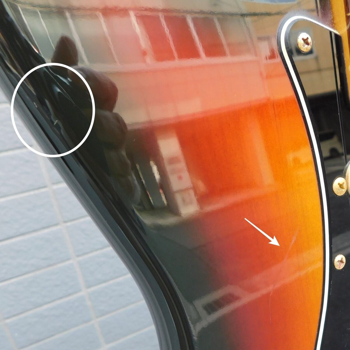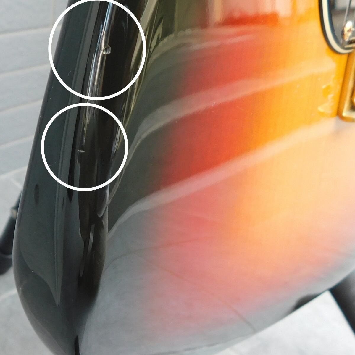 サンバーストのボディに映えるゴールドパーツ仕様。