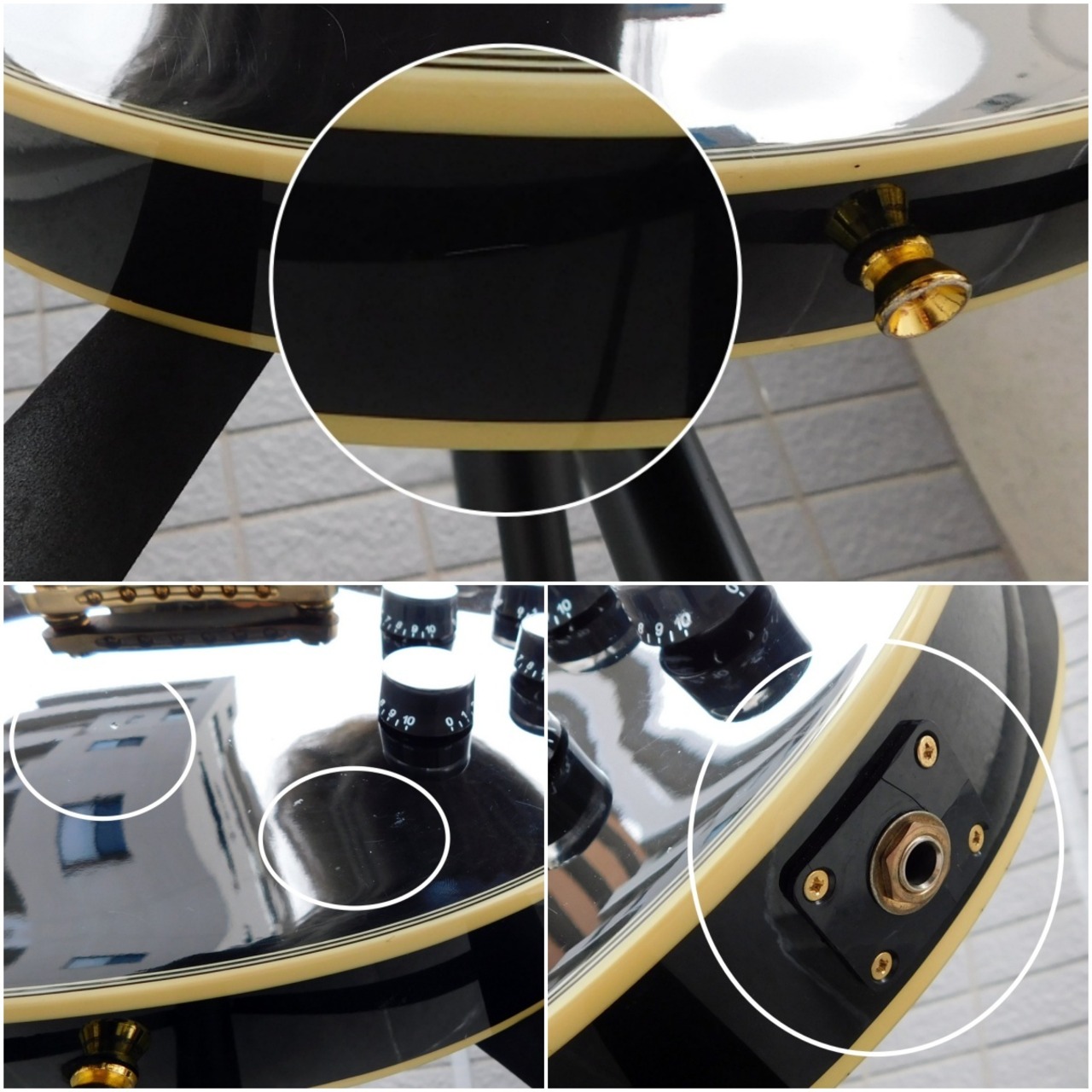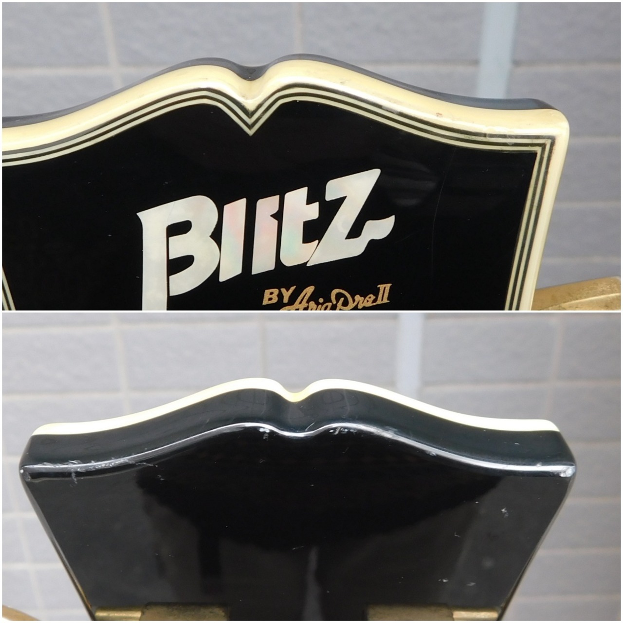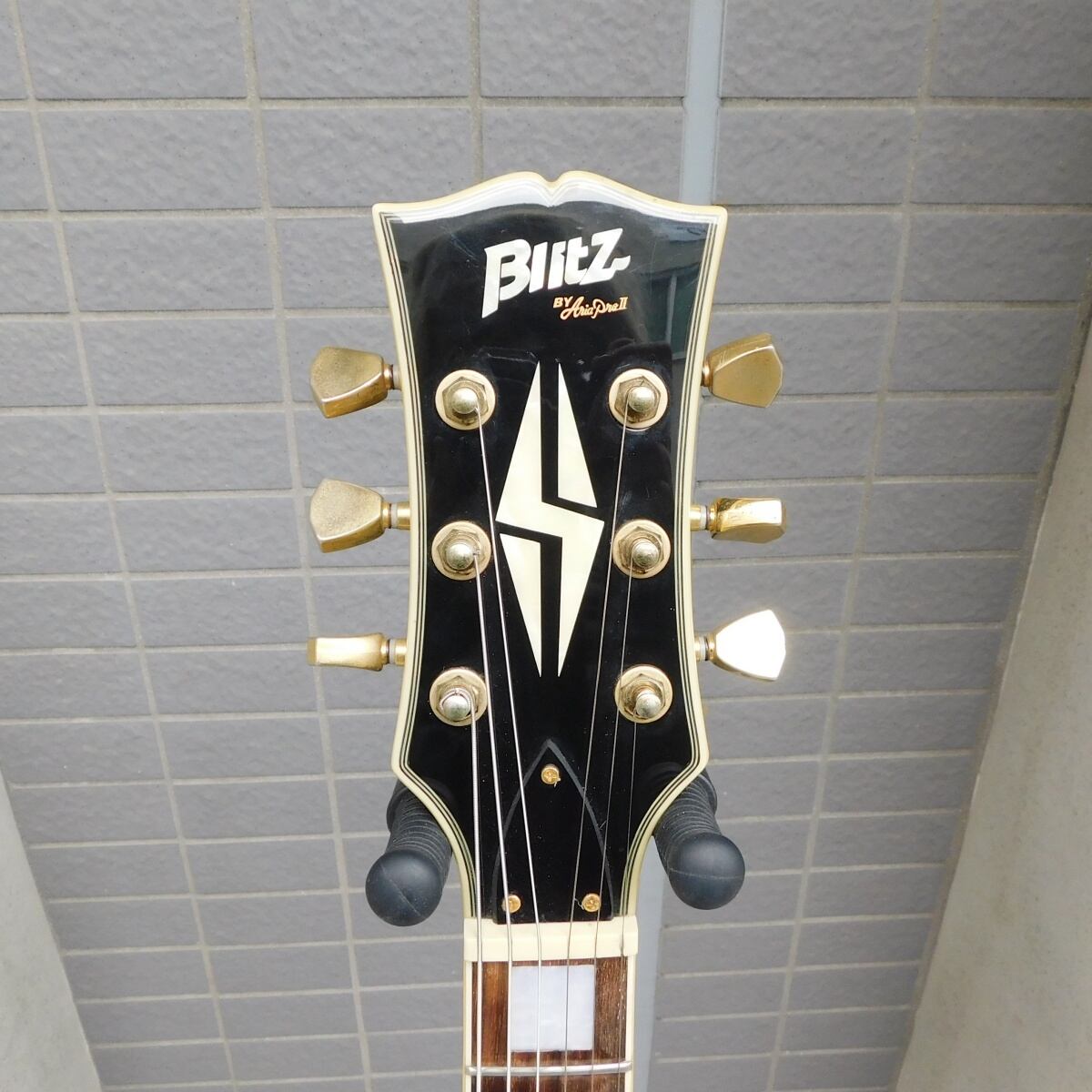 アリアプロIIがプロデュースするブランド「ブリッツ」による、レスポールカスタム・タイプのモデル。重厚なルックスを象徴するブラックボディにゴールドパーツを配し、指板のブロックインレイやボディ・ヘッドのバインディングなど、伝統的なカスタムの意匠を再現している。