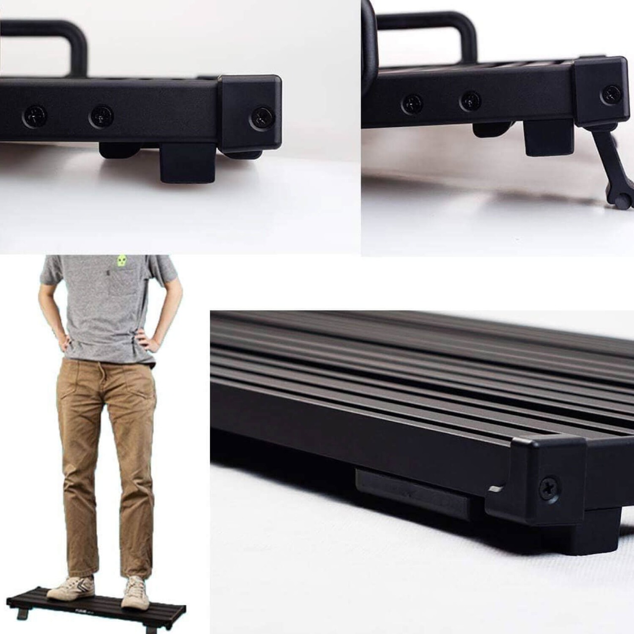 折り畳み式の脚部を備え、傾斜をつけることでスイッチの踏みやすさを向上。 頑丈なハンドルが付属しており、ボード単体での移動もスムーズ。