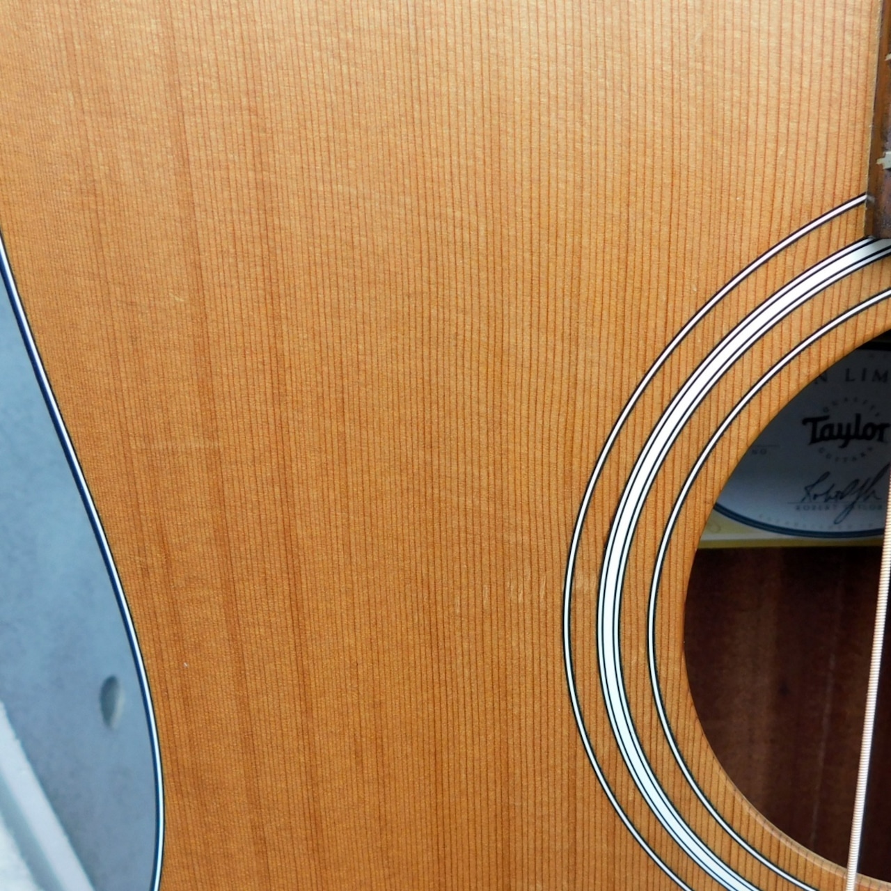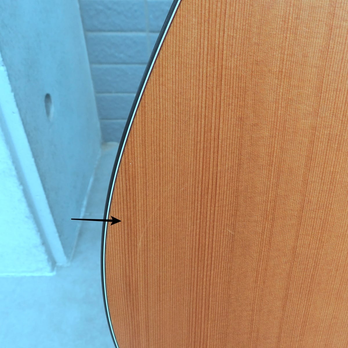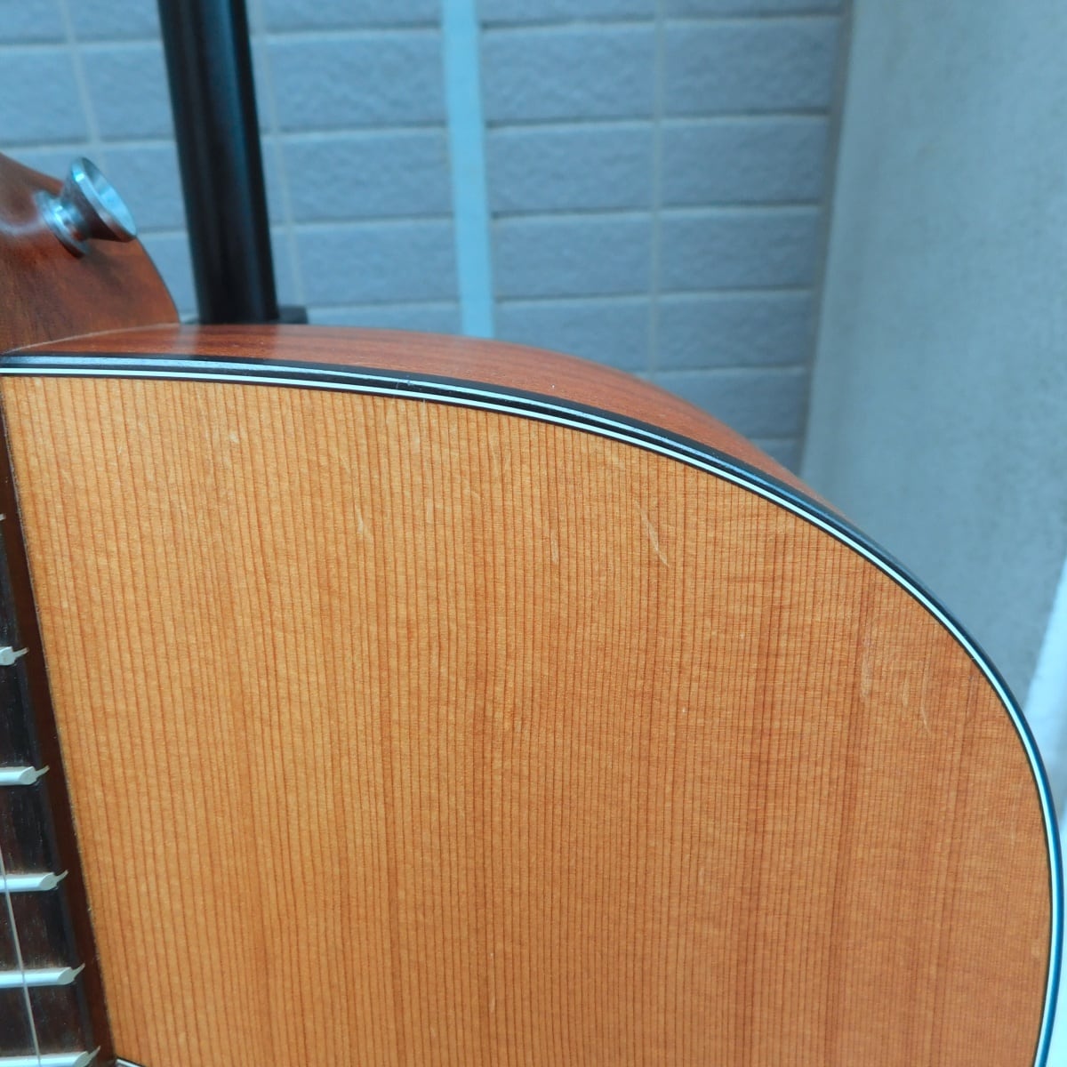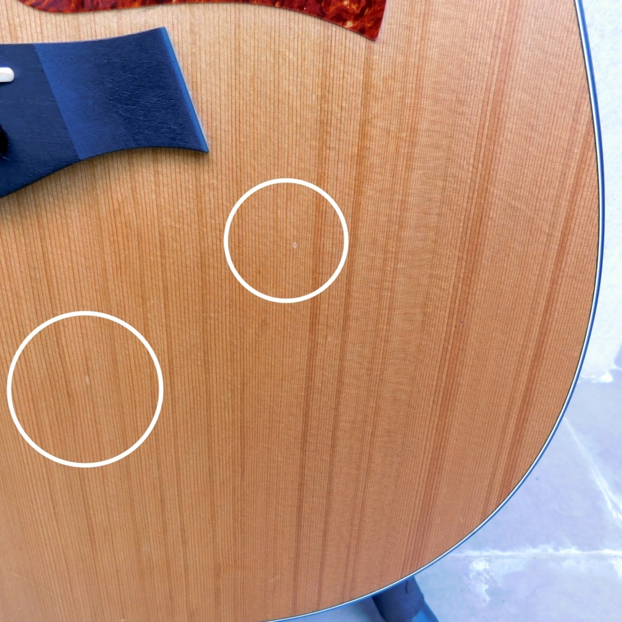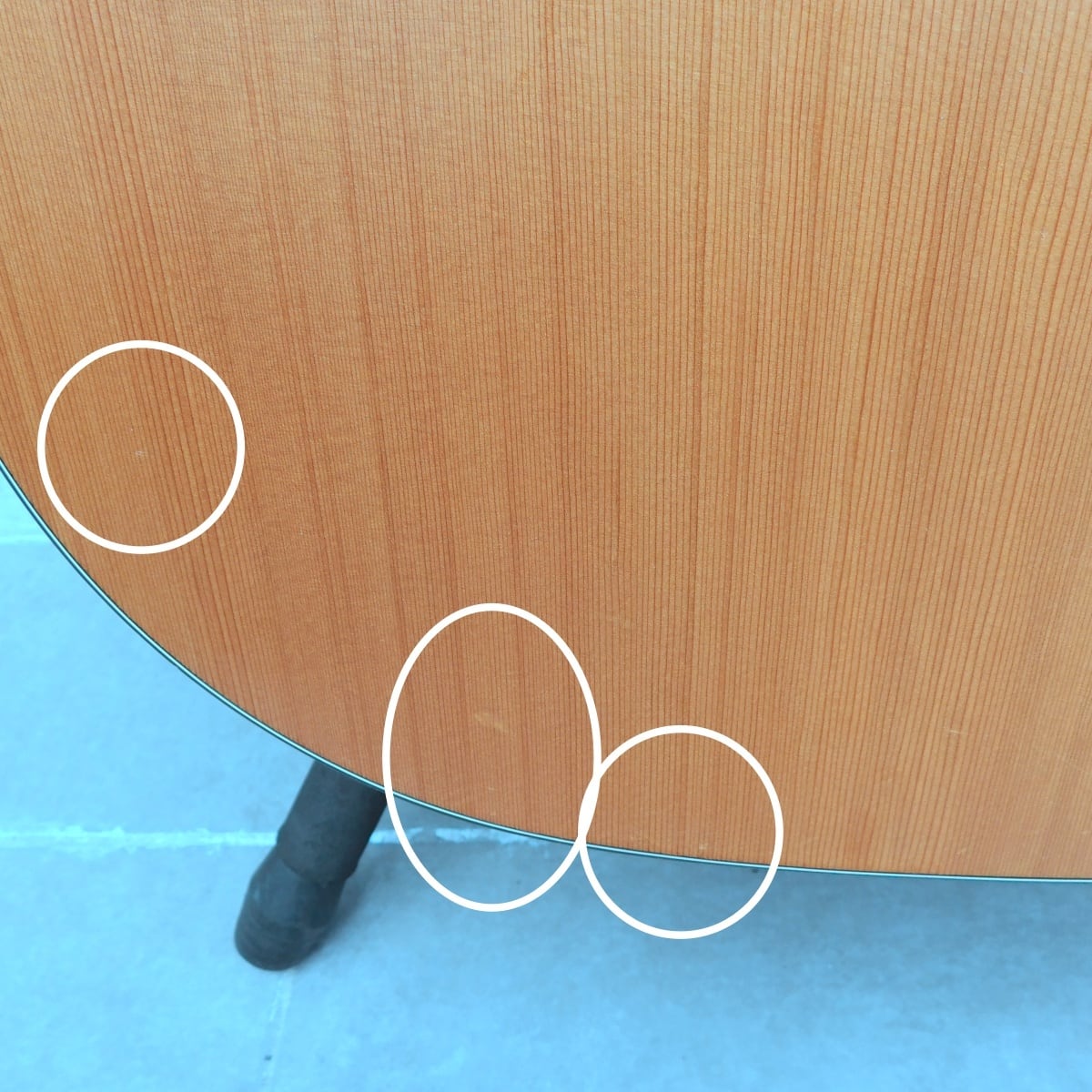 外観:サウンドホール周りにピック傷あり